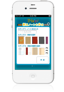このバージョンはiNotes+ for iPhoneの無料バージョンです。有料バージョンと機能的には同じですが、最初に用意されている利用できるノート表紙と紙スタイルは3枚のみです。